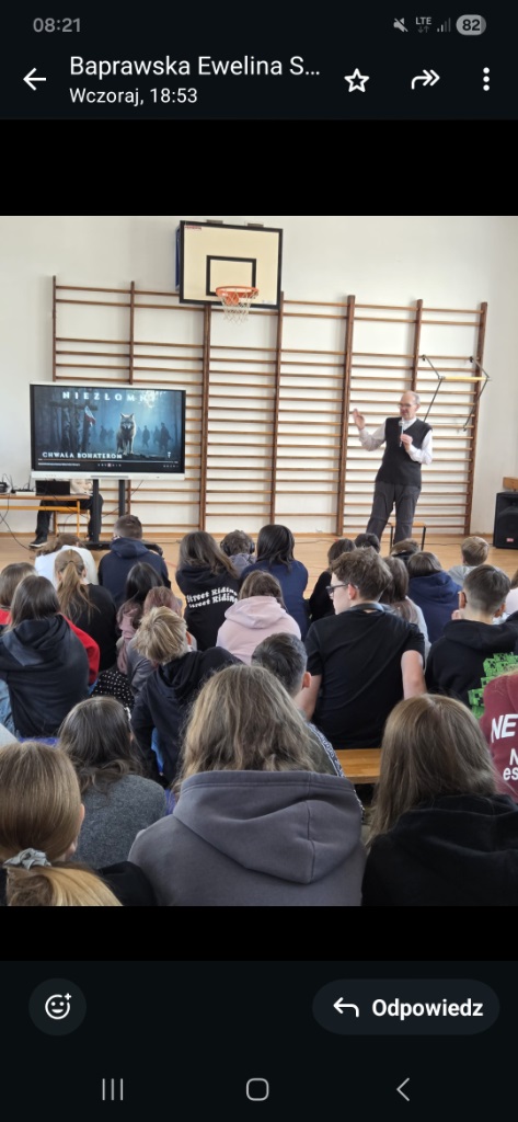 Dnia 3 marca, w naszej szkole odbyła się wyjątkowa lekcja historii poświęcona Narodowemu Dniu Żołnierzy Niezłomnych.