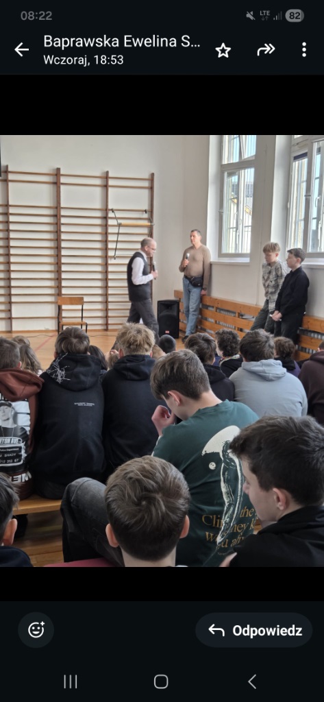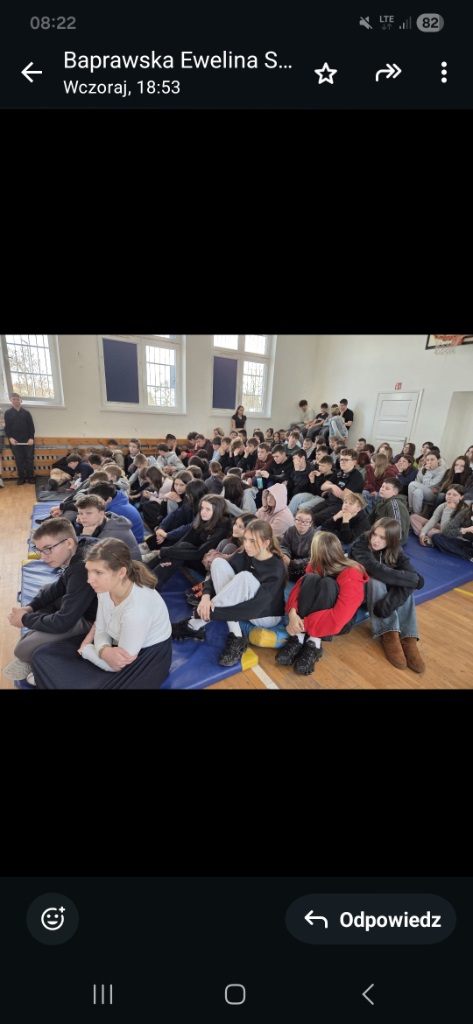 Nie zabrakło również pytań skierowanych do zgromadzonych klas, co pozwoliło na wspólne refleksje i utrwalenie zdobytej wiedzy.